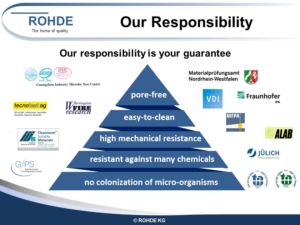 Но нашата отговорност не спира до тук. В съответствие с нашата философия тази отговорност означава и внимателно използване на ресурсите. Ние сме сертифицирани по ISO 14001 - Безопасност на труда и опазване на околната среда - от 1999 г. Във всичко, което правим, ние винаги следим ефектите върху нашите служители, върху обработката на строителната площадка и след това при експлоатация.